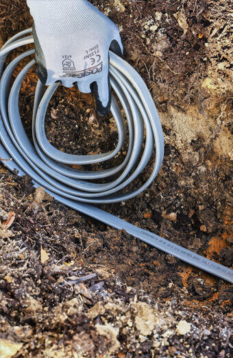 We connect properties to the electricity network using underground service cables from the nearest pillar or pit, including trenching, conduit installation, and proper terminations.