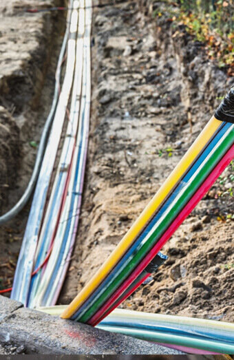 Professional installation of mains cabling from network pillars to metre boxes with correct segregation, depth, and protection according to distributor regulations.